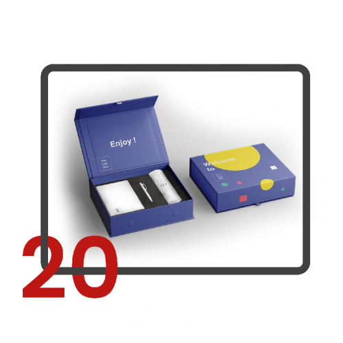 Custom Branded Box 20 · Notebook · Pen · T-shirt * with your logo