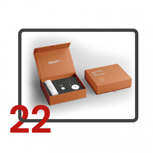 Custom Branded Box 22 · T-shirt · Wireless Charger · Keychain * with your logo